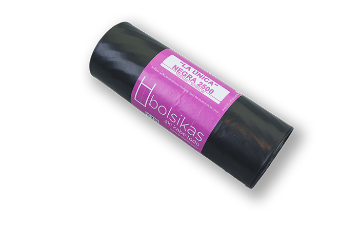 Bolsa de basura 90x110 negra. Galga 250. Baja densidad. Peso rollo: 497 grs (+/-). Para cubos de 120 litros. Bolsa de basura industrial 2500 "La Única" con soldadura lateral Uso indicado...